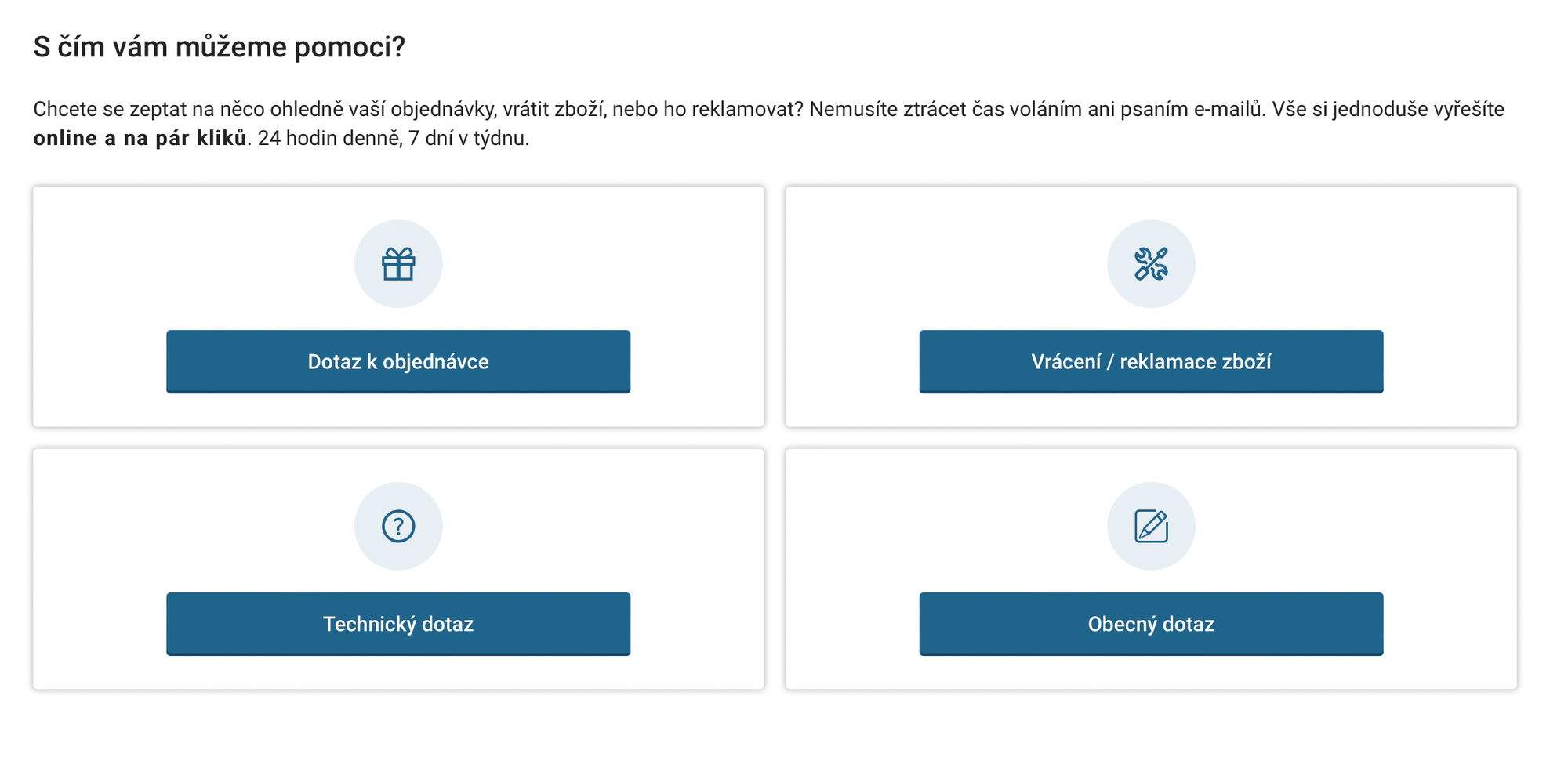 Spoustu věcí tak umíme vyřešit úplně automaticky. Například, když zákazník klikne, že chce objednávku stornovat, nám se rovnou stornuje v systému a zákazníkovi přijde potvrzení. Operátoři nemusí nic řešit. A požadavky, které ještě takhle hezky automatizovaně řešit nedokážeme (nejčastěji z nějakého technologického či procesního omezení), operátorům zákaznického centra přijdou alespoň přehledně strukturované.